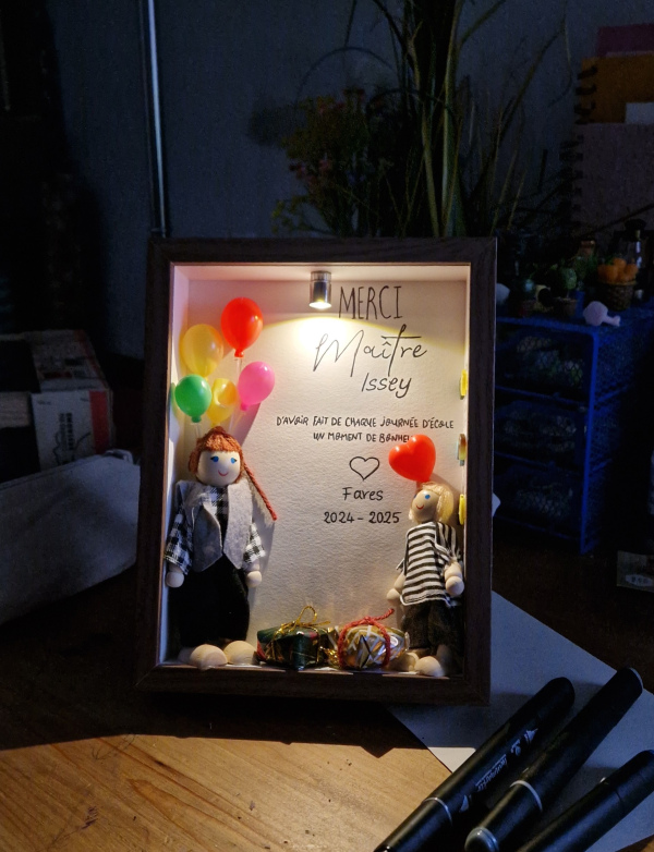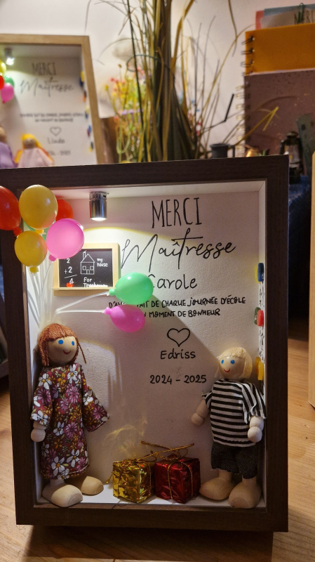 • Le message à inscrire sur le tableau (ex. : Merci Maîtresse, Joyeuses Fêtes, Avec tout mon amour, etc.)