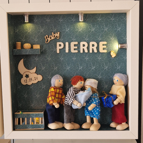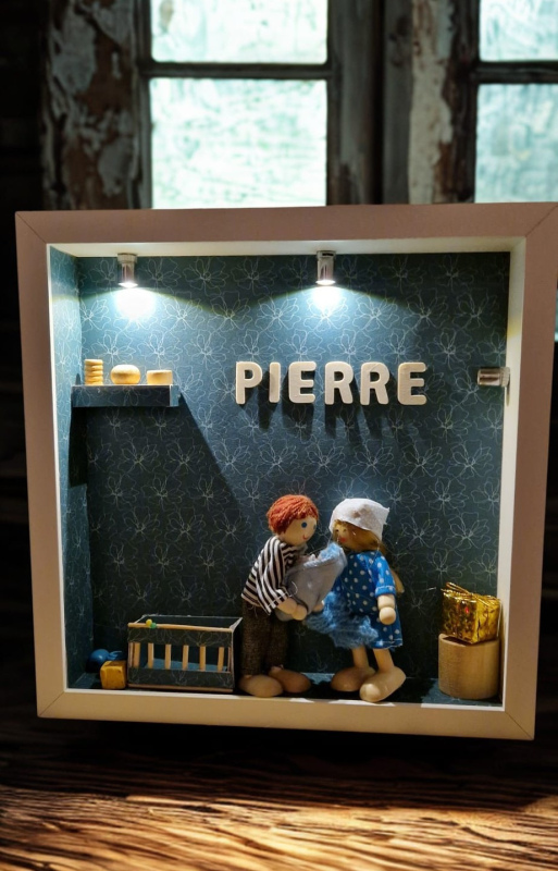 Offrez (ou offrez-vous) une œuvre 3D sur mesure, entièrement réalisée à la main avec des matières naturelles et des poupées en bois façonnées selon votre famille, votre histoire et vos envies.